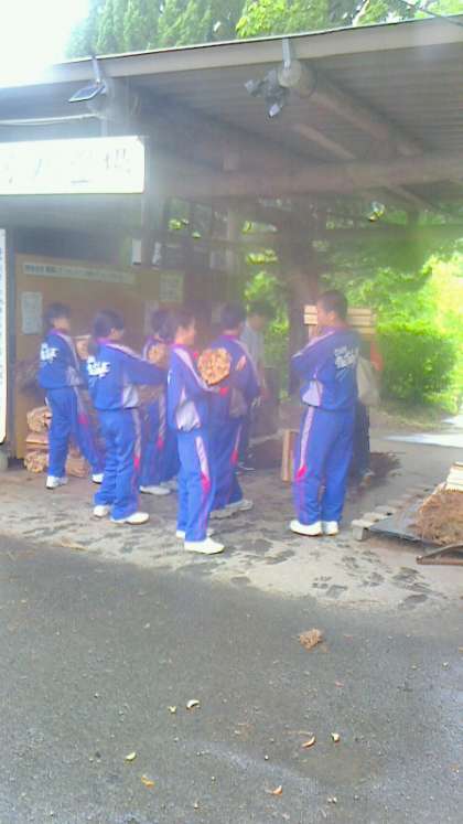 飯盒すいさん 薪の受け渡しです。