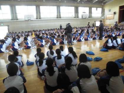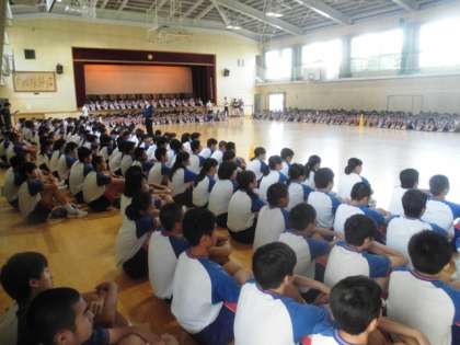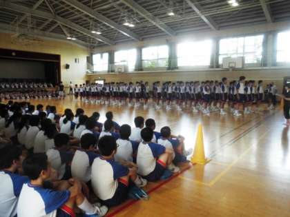 運動場の状態がよくないので、1限は体育館で実施しました。