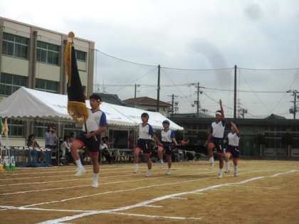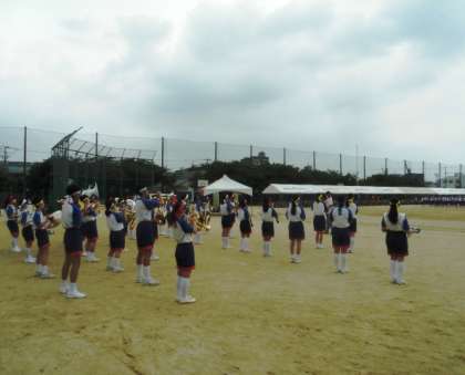 体育大会 開会式 吹奏楽の演奏で行進です。