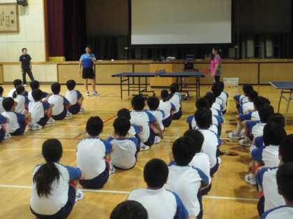 「夢・授業」で卓球の新井 周さんが、講演と実技指導に来校されました。