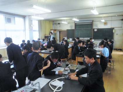 理科 実験の授業風景です。