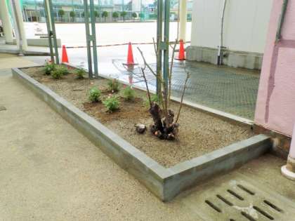 中庭の花壇を整備しました。