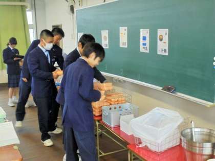 2年生 給食の配膳風景です。