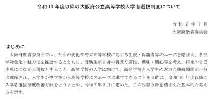 <令和7年7月25日>令和10年度以降の大阪府公立高等学校入学者選抜制度について
