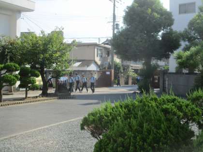 本校では、狭い道路も通学路として利用しています。交通安全には、より心がけて登校します。