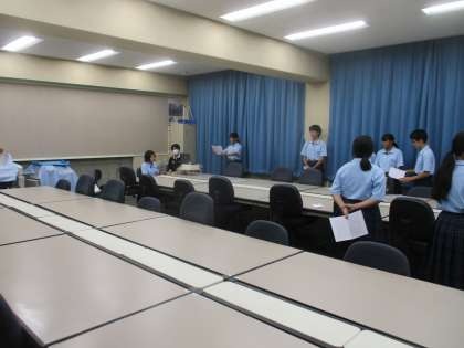 皆さん、力強い演説です。また、各教室では、しっかりとその演説を聞いています。
