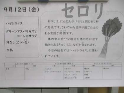 今日の給食の献立は、ハヤシライス、グリーンアスパラとコーンのサラダ、洋なし(カット缶)、牛乳でした。