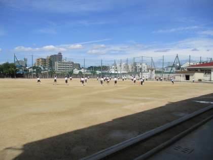 1年体育の授業の様子です。ハンドボール投げに取り組んでいます。