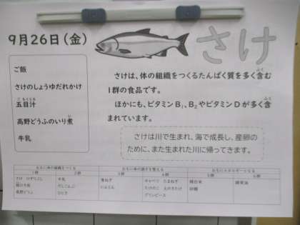 さけは、体の組織をつくるたんぱく質を多く含む1群の食品です。