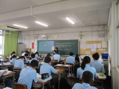 2年英語の授業の様子です。英語の「聞く」「話す」「読む」「書く」の4技能を習得します。