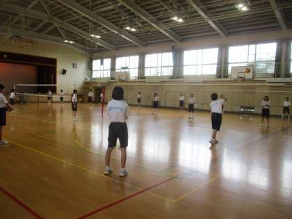 女子は、バレーボールに取り組んでいます。サーブ・レシーブの技術の習得に取り組んでいます。