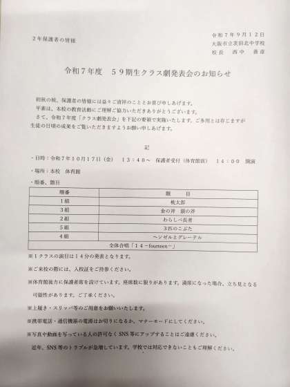 ・日時:令和7年10月17日(金) 13:40〜保護者受付(体育館前) 14:00開演