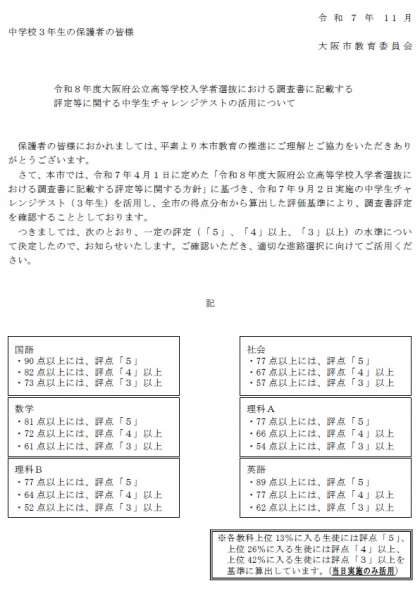 調査書に記載する評定等に関する中学生チャレンジテストの活用について