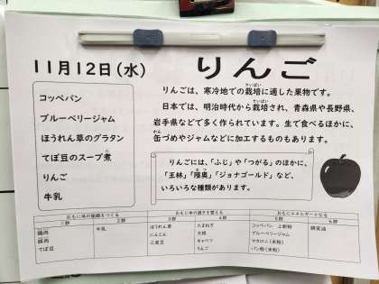 今日の給食の献立は、コッペパン、ブルーベリージャム、ほうれん草のグラタン、てぼ豆のスープ煮、りんご、牛乳でした。