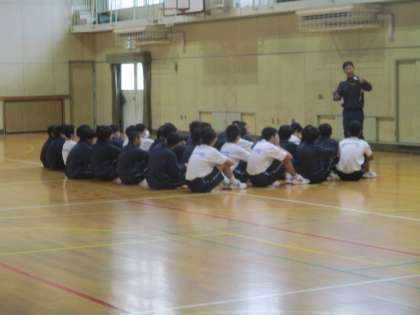 オーバーハンドパス・アンダーハンドパスの技術の習得、ゲームのルールを理解することが今回の授業のテーマです。