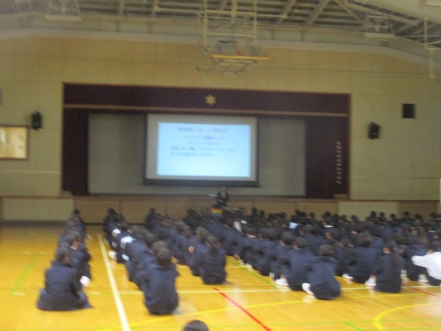 2年生が体育館で「性」について学習しています。