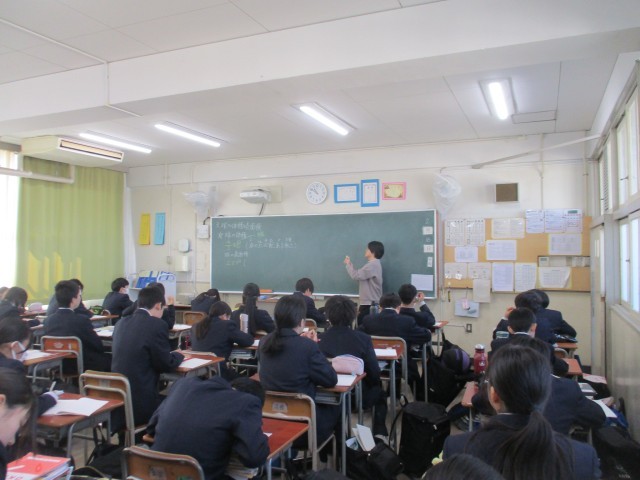 球の体積・表面積を求めることに取り組んでいます。公式を使って、計算しています。