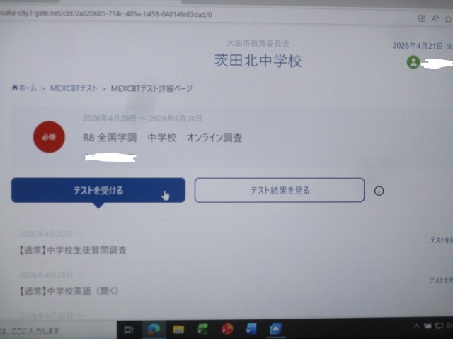 全国学力・学習状況調査の英語オンライン調査を実施しました。