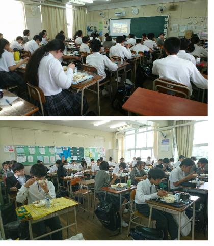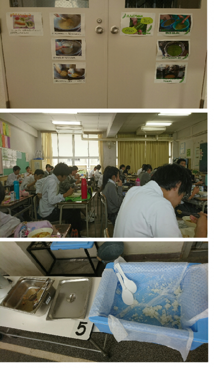 給食室の扉には「ホワイトルウ」の作り方やえんどうまめの