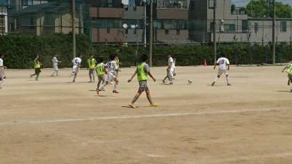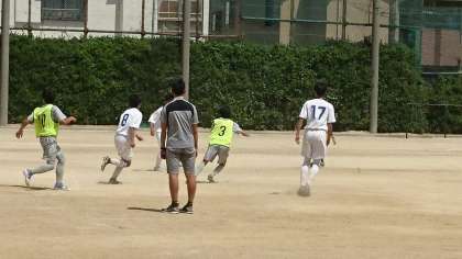 学校のグラウンドではサッカー部が練習試合の真っ最中でした。