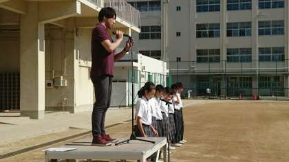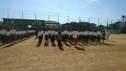 日差しも厳しくなってきましたが、全校集会を開き、陸上競技部の