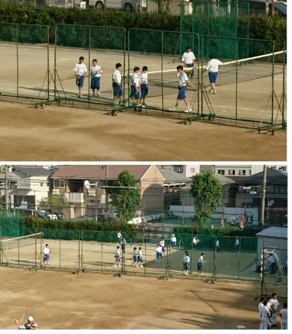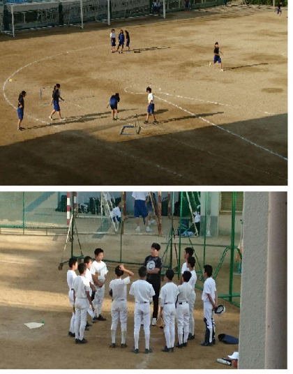 運動場でも、陸上競技部、野球部、テニス部が所狭しとがんば