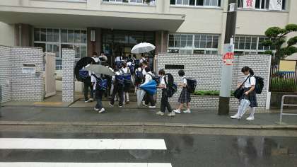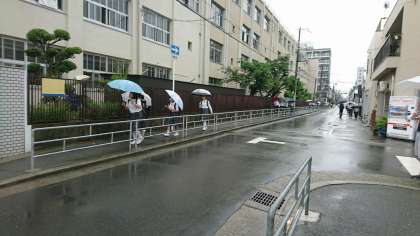 雨の登校風景