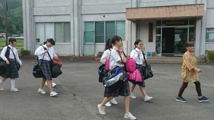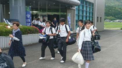 安心院に到着です。受け入れ家庭との入村式、歓迎式です。その後、受け入れ家庭と移動していきました。