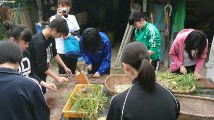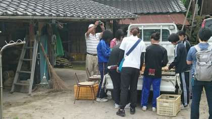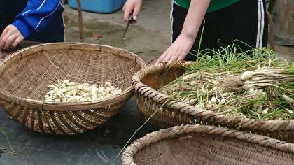 早速、朝ごはんの後、農作業に取りかかります。らっきょうの収穫です。