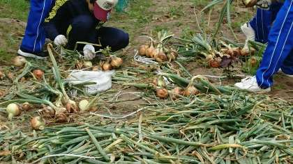 早速、朝ごはんの後、農作業に取りかかります。玉ねぎの収穫です。