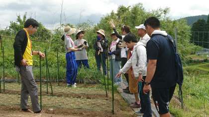 早速、朝ごはんの後、農作業に取りかかります。ニホンハチミツもいました。