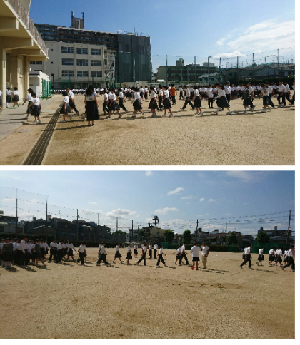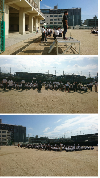 には全校生徒が整列できている状況です。(まだまだ遅れてくる生徒も