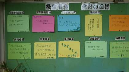 職員室前には、各常任委員会からの今月の目標、連絡、報告が掲示さ