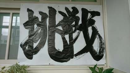 校長室前には、「挑戦」の文字。何事にも努力してチャレンジしてほ