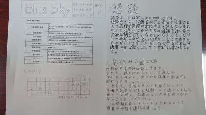 生徒会から生徒会新聞「ブルースカイ」の発行です。