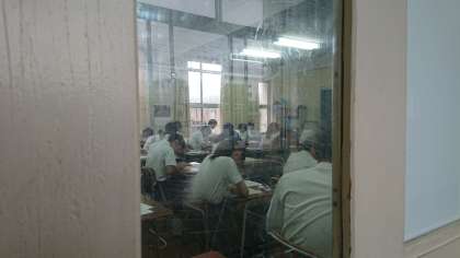 教室、廊下は誰もいないかのような静けさの中、テストが