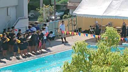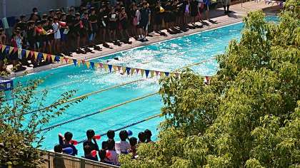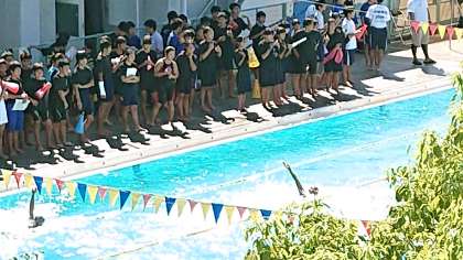 多くの保護者の応援の中、水しぶきが舞っていました。