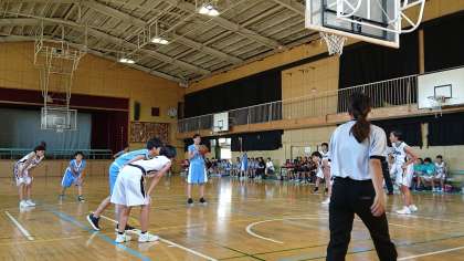 気温上昇の中、三稜中学校の体育館にて、バスケットボールの試合が行われました。