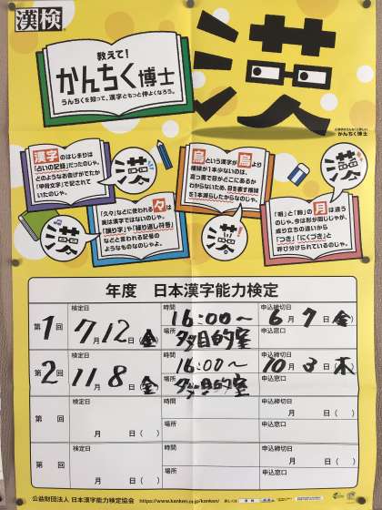 今津中学校の多目的室を会場として、日本漢字能力検定を実施しています。