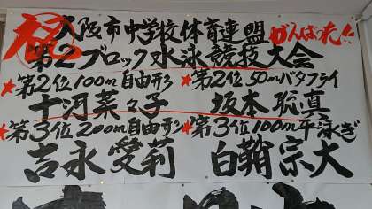 水泳部の2ブロック大会、サッカー部の秋季大会の結果です。