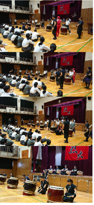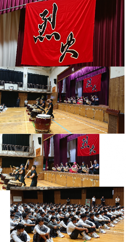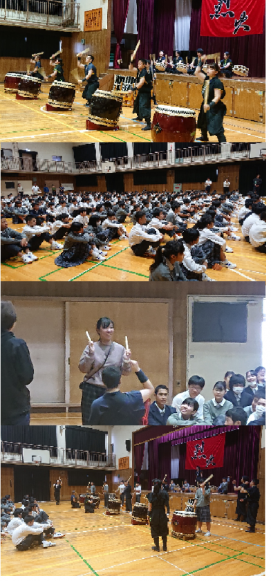 迫力ある太鼓の響きを存分に披露していただき、生徒たちの心に