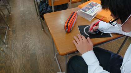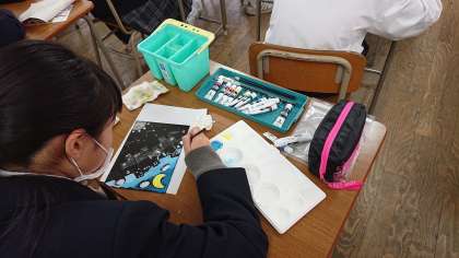 美術の授業では、黒いプラスチック版の黒を削り落としそれに