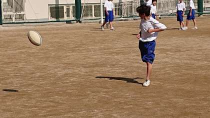 影響もあるのか、みんな楕円形のボールをハス、キックとボ