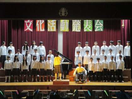 先日の合唱コンクールで最優秀賞となったクラスの発表です。