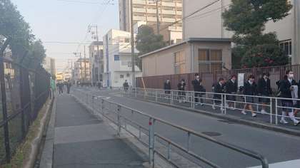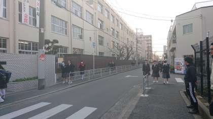 「おはようございます!」のあいさつの声。