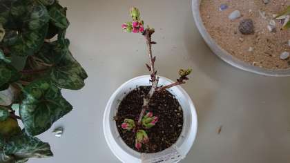 校長室前の小さな桜の枝から少しずつつぼみが膨らんできて