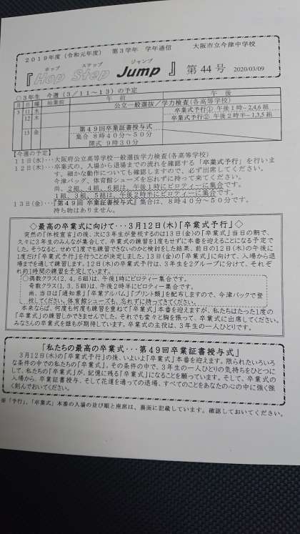 健康な身体で、3年生は卒業証書授与式に参列できることを