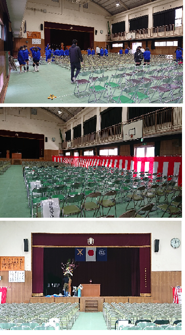 明日の入学式では、感染症拡大の予防対策をして実施します。