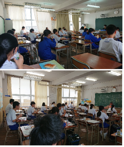 午後からの生徒も12:30以降に登校し、すぐに給食を摂って