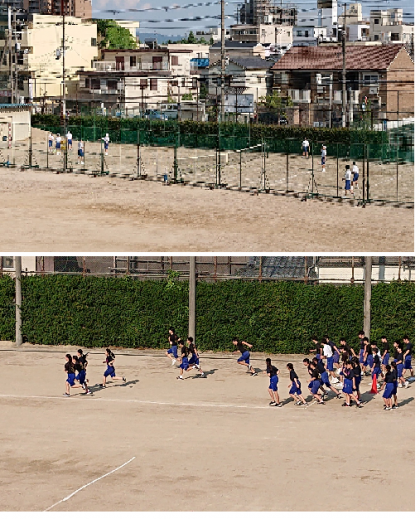 体育館では、女子バスケットボール部とバレーボール部が練習。